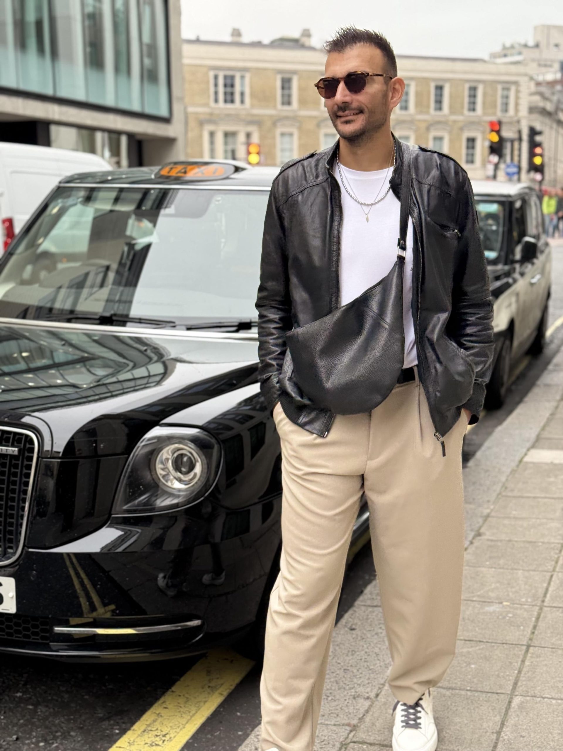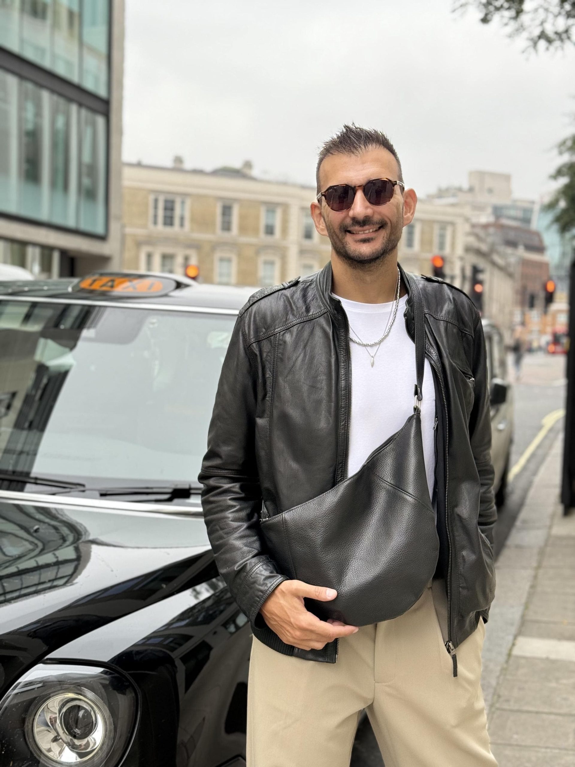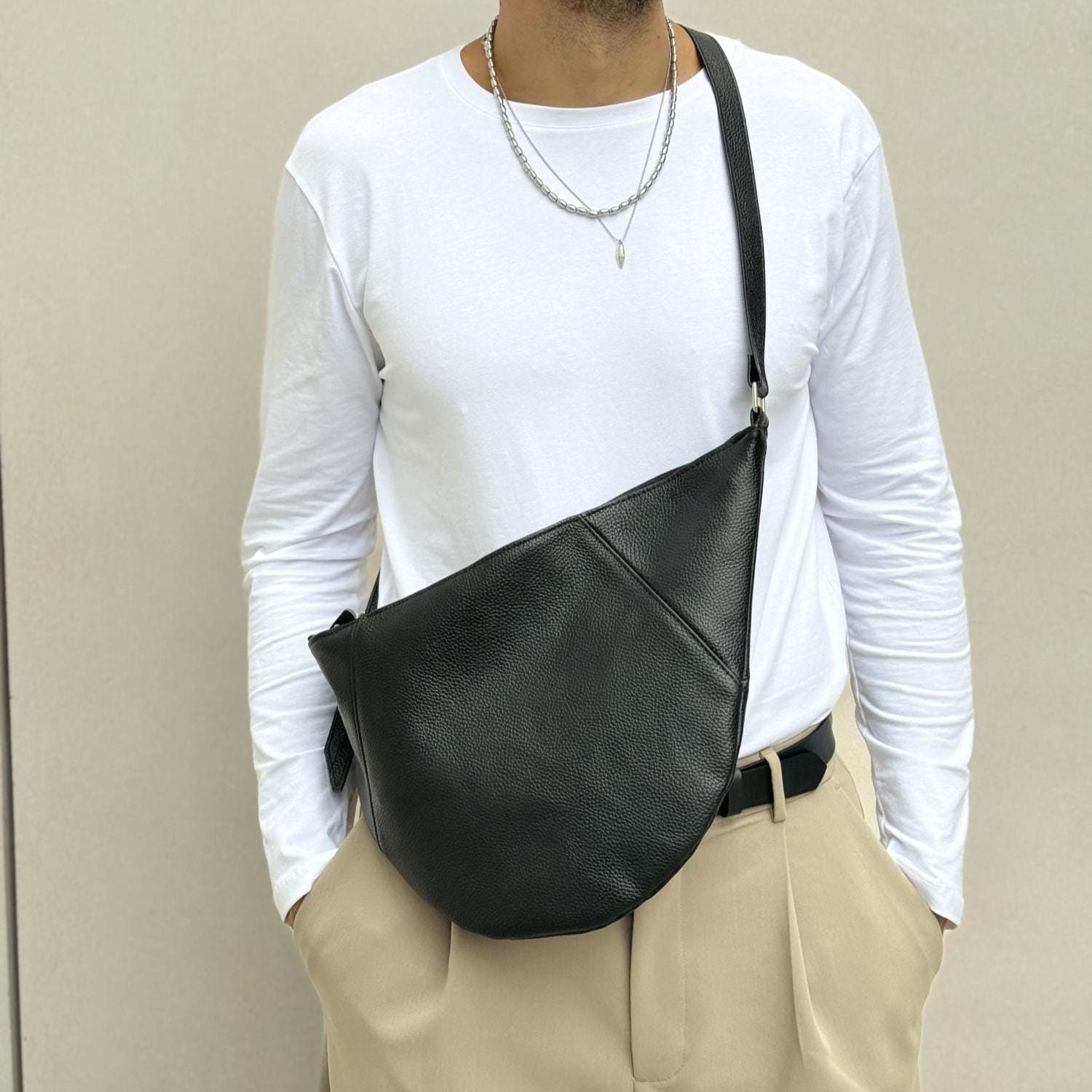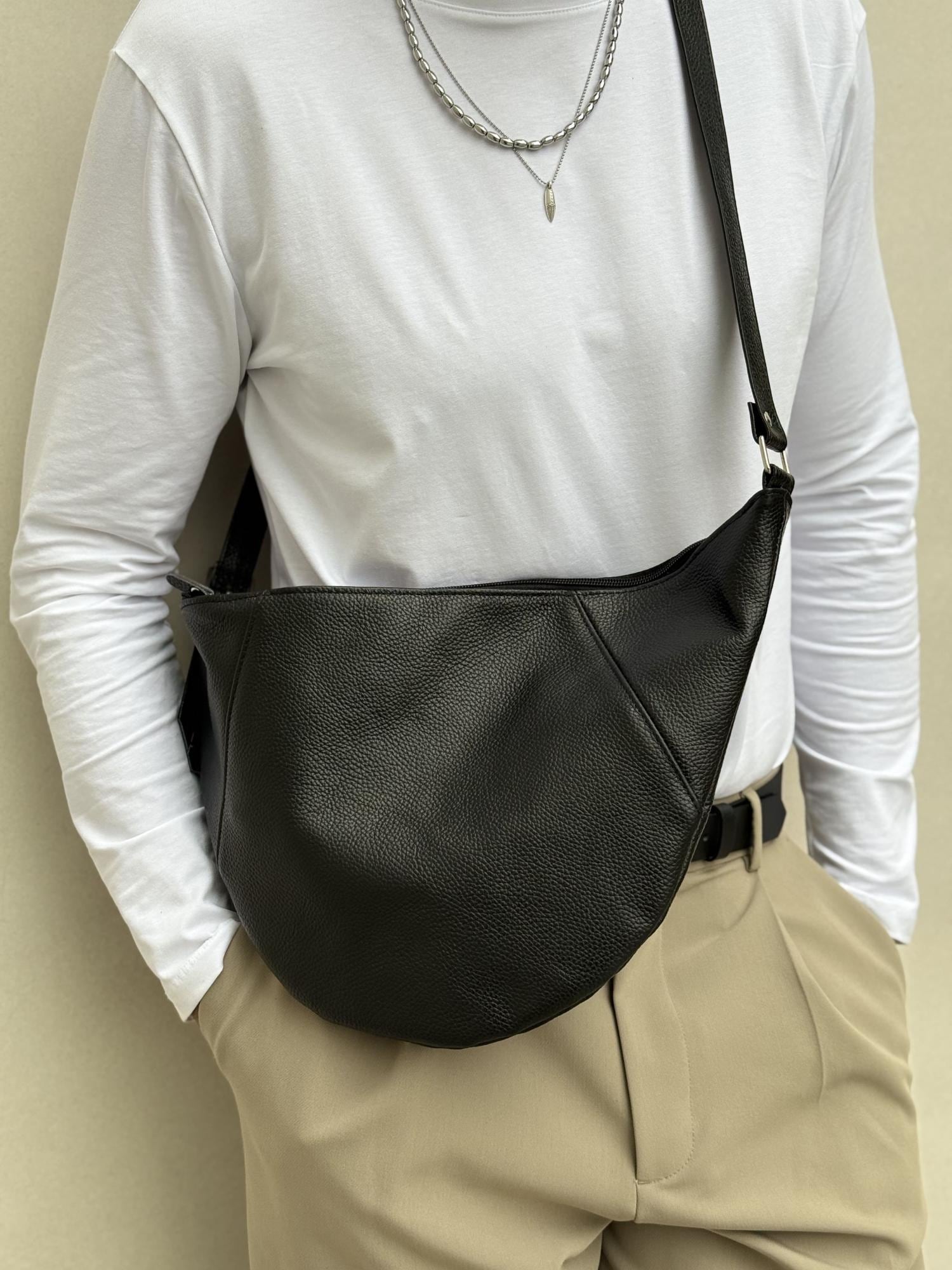This handmade men s tote bag is crafted from premium full grain leather in deep black color. Designed with silver metal buckles, and a top zipper closure. Featuring a single spacious interior and adjustable strap, it combines urban sophistication with everyday practicality .