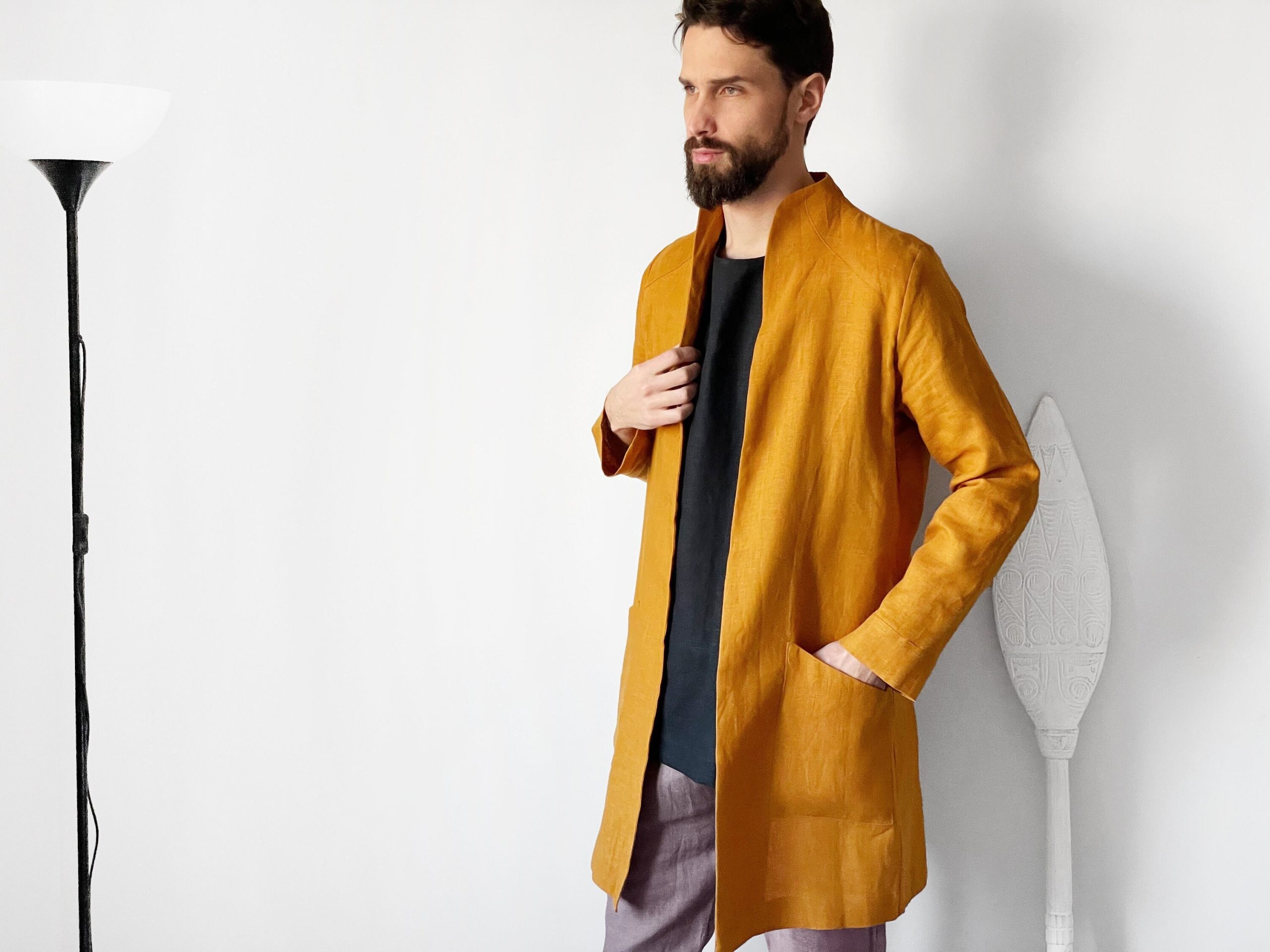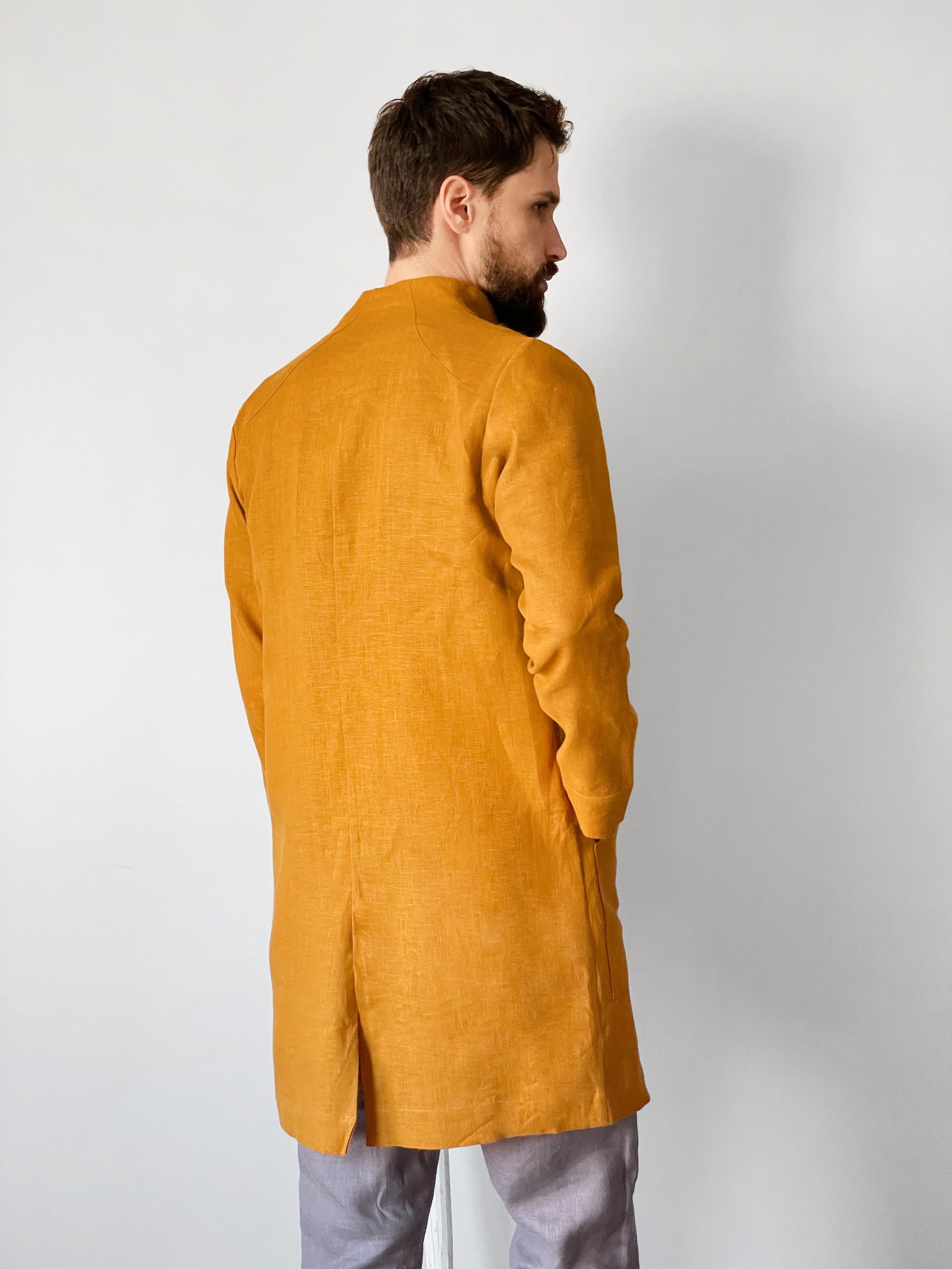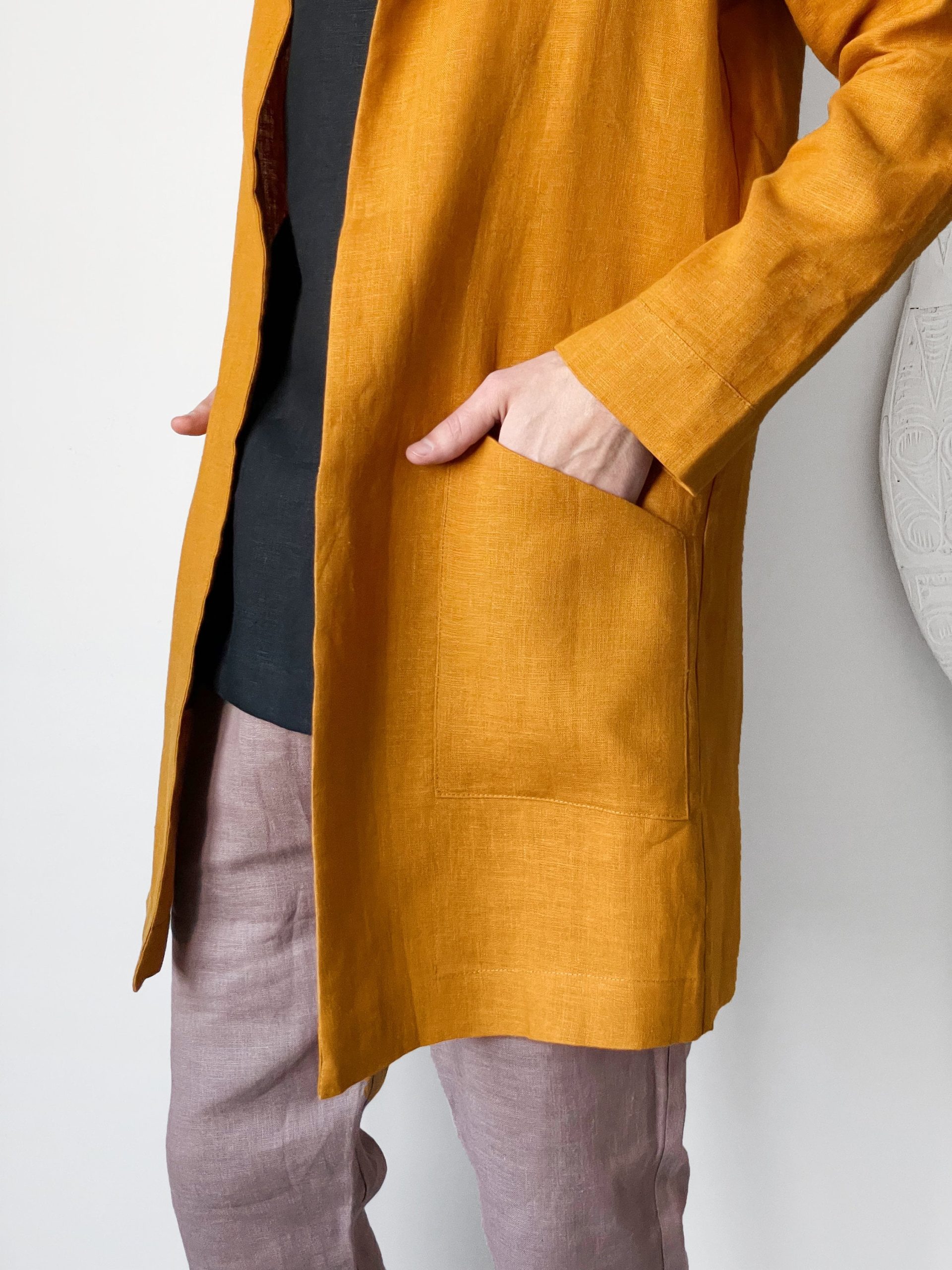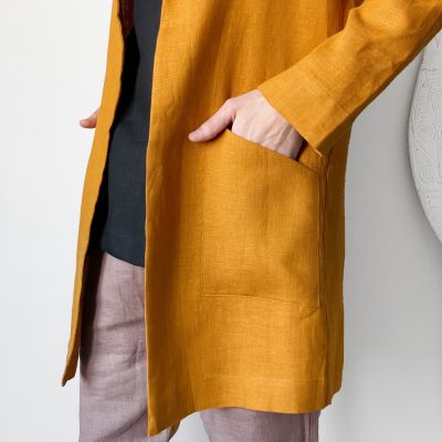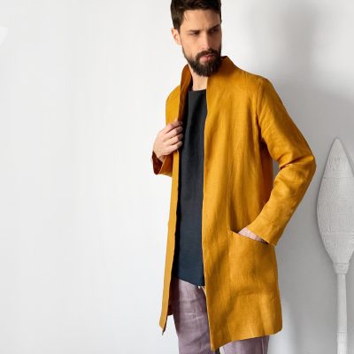 Wear it as a linen coat, summer cloak, free breed jacket. Perfect for spring – autumn weather. The cut of our clothes coined so that it can look appropriate, both on the street and at home.