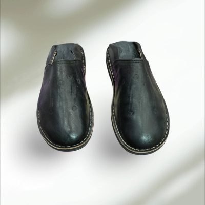 Babouche Marocaine Noire En Cuir Chaussons Classiques Faits