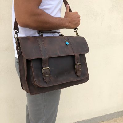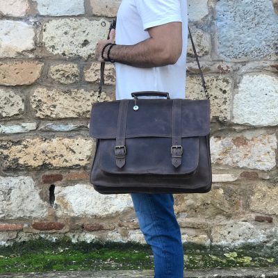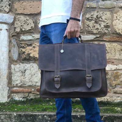 Mens Laptop Briefcase Full Grain Leather Messenger Bag